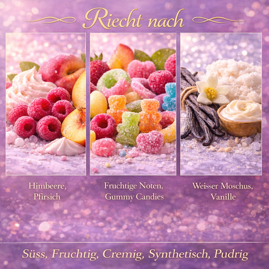 Unser Parfum November vereint fruchtige Süße und weiche Wärme zu einer ausgewogenen, angenehmen Komposition. Die Kopfnote eröffnet mit Himbeere und Pfirsich und verleiht dem Duft eine frische, fruchtige Leichtigkeit. In der Herznote entfalten sich fruchtige Noten mit einem dezent süßen Candy-Akzent, die dem Duft eine sanfte Verspieltheit verleihen. Die Basis aus weißem Moschus und Vanille rundet die Komposition harmonisch ab und sorgt für ein weiches, ruhiges Dufterlebnis.